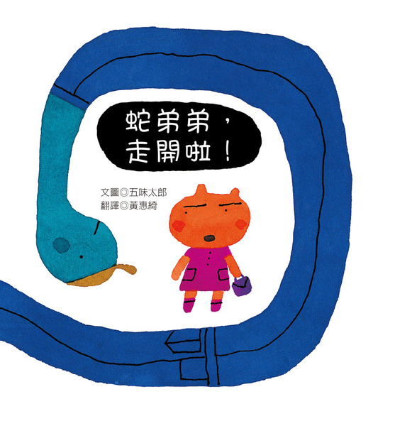 當小女孩在畫畫時,又被蛇弟弟的長尾巴撞到了,接下來,當小女孩玩蓋房子遊戲、堆沙堡、溜滑梯、游泳……都可以看見蛇弟弟的身影,而小女孩只要看到蛇弟弟,就會直接叫他走開。在五味太郎《蛇弟弟,走開啦!》的這個故事,小女孩不管到何處都一個人行動,似乎沒有任何玩伴,好像也不需要玩伴的樣子,而熱情有耐心的蛇弟弟總是在一旁跟著小女孩一起做她想做的事情,一旁的人看了可能會覺得蛇弟弟熱臉貼冷屁股,還有點厚臉皮的感覺,但在小女孩與蛇弟弟兩個人的表情中,前者總是繃著一張臉,而後者總是在享受當下自己所做的一些事情。作者這樣巧妙的設計,讓讀者更能感受到兩人的差異。