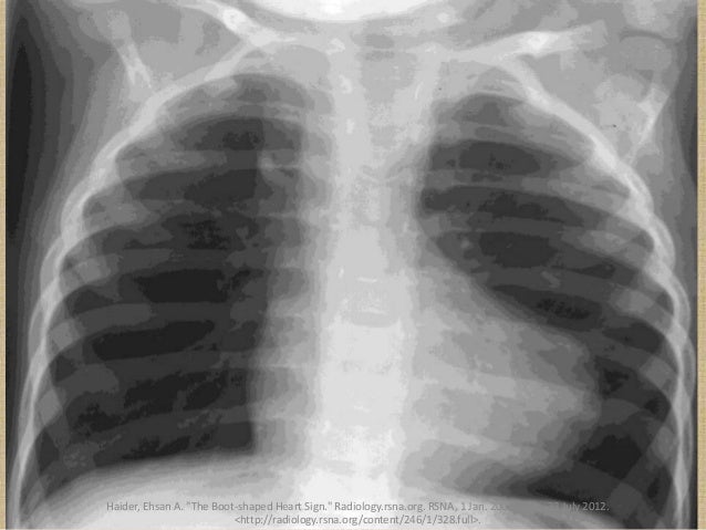 - Boot shape in x-ray(caused by R. ventricle hypertrophy) 靴狀心臟