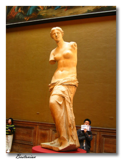如同農夫一樣,只看一眼,我也成為維納斯的俘虜,是她的美麗的氣質也好,或是她謎樣的歷史背景也行,我有一種莫名的感覺,那是一種激動,喜悅,及哀傷的感覺.許久,我注視著維納斯,沒有言語,也無法言語,如同一座石像...