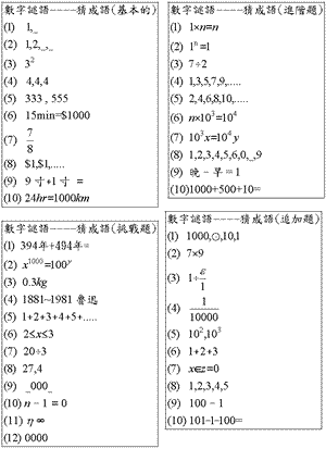 4. 舉世無雙4. 三從四德(我的謎底跟您的不同,用了諧音.)