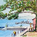 灰白的高架橋墩上貼著褪色的廣告紙,橋下的人行道被斑駁的影子切割成數塊,學生們踩著腳踏車快速掠過,外送員拉著綠色或藍色的外送箱,繞過等紅燈的車陣,騎進橋下微暗的空間裡。偶爾有公車呼嘯而過,捲起一陣熱風,吹得橋下的塑膠袋翻滾又停下。