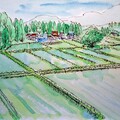 出得略為陰暗的賣場, 重享新鮮的空氣, 從地圖上知道下面就是橋仔, 有些期許, 海洋的顏色正好, 典型的黃綠色, 不由心胸開闊了起來, 目光四下瀏覽, 旁邊有座小屋, 週圍種滿花草, 小屋堆滿捕魚雜物, 木條竹棒等, 屋後一位老婦坐在簷下的藤椅打著盹, 此景只應小說中有.