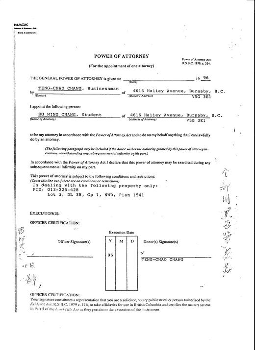 加拿大統一地產經紀鍾太太1997年4月17日預做假見證的空白授權加拿大住家仲 介委託書予張書銘Paul Chang http://classic-blog.udn.com/alpineatks/10927899 CANADA Vanouver Multiple Realty Paul Chang(E-mail:popo_85061@yahoo.com , Tel:00217788895306) is wanted abduction of children http://classic-blog.udn.com/alpineatks/12225067