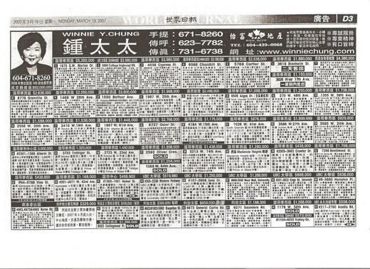5. WINNIE Y.CHUNG(鍾李穎怡) , A REAL ESTATE AGENT FOR PRESIDENT CANADA REAL ESTATE CO. IN VANCOUVER.