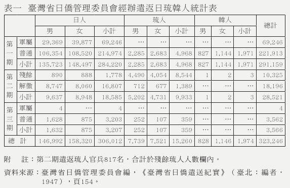 上圖來源:戰後初期在台日人之遣返與留用- 國史館台灣文獻館- 歐素瑛