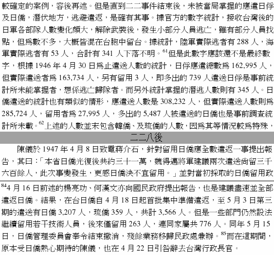 1947年中以後,還待在台灣的留用人員,僅剩少數,最後一批是1948年底到1949年初引揚歸國的。