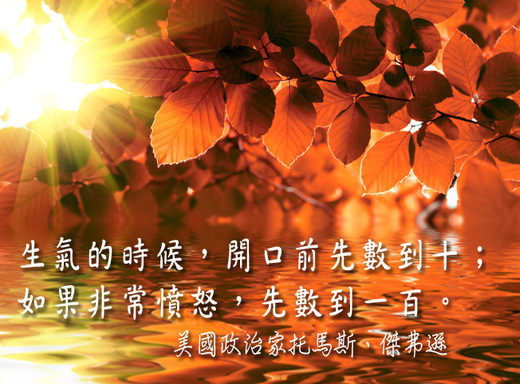 碰到棘手問題時,必須先冷靜下來、切莫衝動行事,學習「先處理心情、再處理事情」,免得事情愈弄愈糟糕。有句話說:「生命的長度是上帝給予的,但生命的寬度卻掌握在自己手中」。的確,我們雖不能控制生命的「長度」,但可以控制生命的「寬度」。