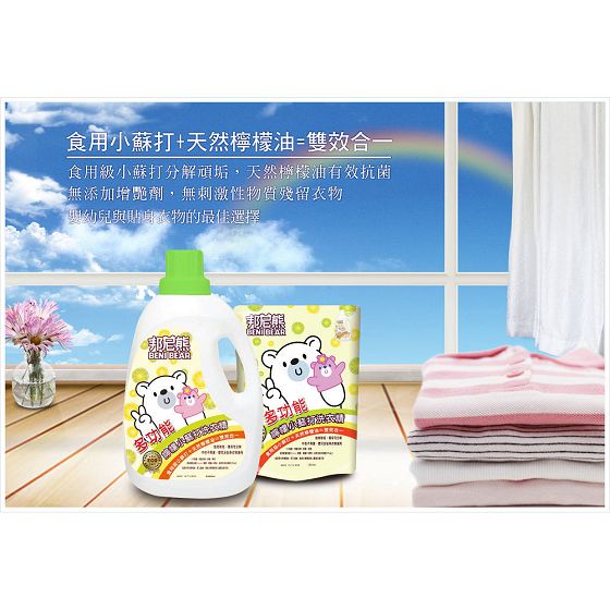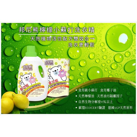 商品網址: 【Benibear邦尼熊】多功能檸檬小蘇打洗衣精10入/箱 1箱/組"