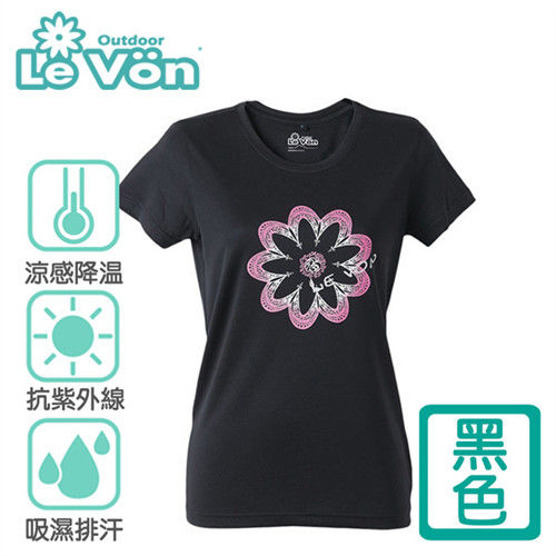 【LeVon】 女款吸濕排汗抗UV短袖圓領衫-黑色( LV6203)