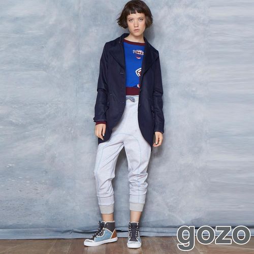 gozo 線條配色綁帶造型縮口棉褲(灰色) ![]() |
