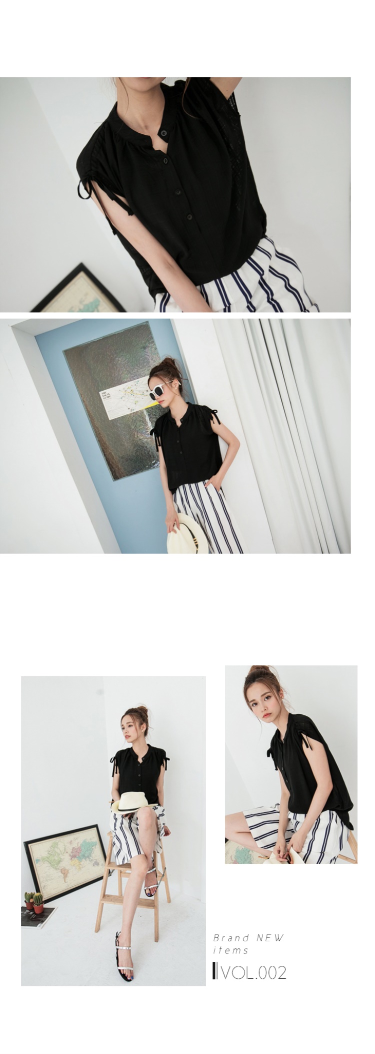 0602新玉山銀行債務整合品 輕曳典雅~格紋雪紡抽繩連袖前短後長上衣.2色