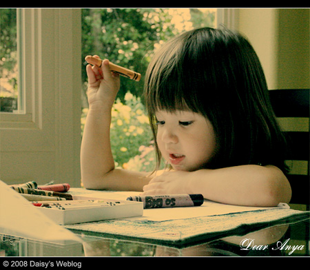 除了開始愛漂亮以外,加恩也是個水做的孩子,感情十分脆弱。有時爸爸媽媽對她說話的語氣重了一點 (並不是責罵) ,她那一雙清澈明亮的大眼睛馬上模糊起來,接著淚水就如像忘了關上的水龍頭似的嘩啦嘩啦地流個不停,讓人不知如何是好。不知道天性敏感的孩子是不是也特別懂得撒嬌? 現在的加恩可是很懂得收買人心,常常忽然撲進聶先生的懷裡,甜甜地對他說 : 「I love you, 爸爸!」,逗得聶先生心花怒放,笑得不合攏嘴地直說 「This little girl can have anything she wants (from me).」(這個小女孩要什麼我都給她!)。