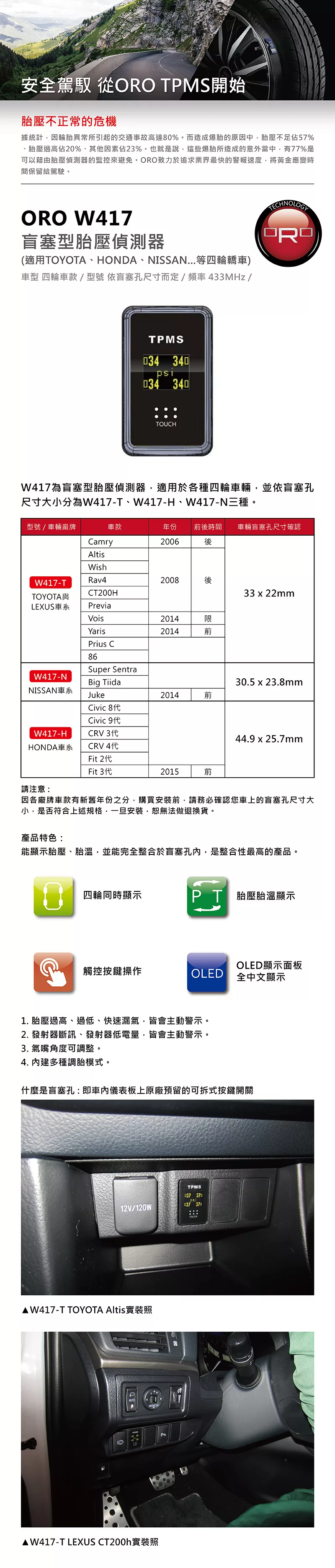 商品推薦:ORO W417-N 盲塞型胎壓偵測器 (適用NISSAN車系)