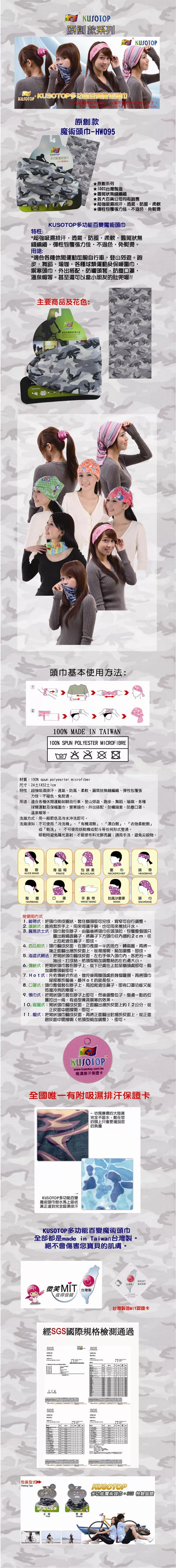 商品推薦:KUSOTOP多功能百變魔術頭巾-HW095(灰白)