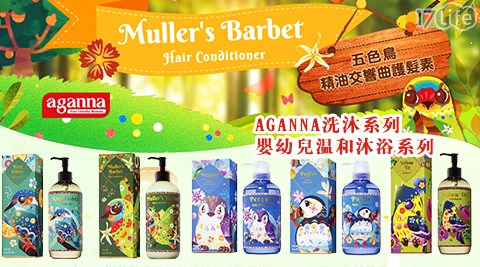 商品:AGANNA 五色鳥精油交響曲護髮/AGANNA 翠鳥精油淨柔平衡沐浴露/AGANNA 黃山雀精油完美護色洗髮精/AGANNA 企鵝精油嬰幼兒溫和沐浴露/AGANNA 海鸚精油嬰幼兒溫和洗髮精