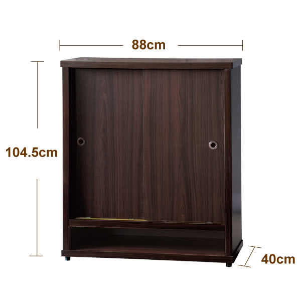 品號:1747619 沉穩胡桃木色系~流行代表全木心板材質~堅固耐用內附4格層板可隨意使用底層為推門式設計~可放室內拖鞋專人配送到府