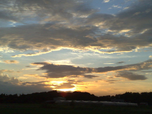整天的天空總是充斥著大量的雲,有黑的也有白的,有人說颱風前夕的夕陽最美,不畏陣風吹著令人頭發疼的風,佇立在一片大田邊等待夕陽的震撼,可惜卻不見火紅的火燒雲,希望下回能見著傳說中的火燒雲。