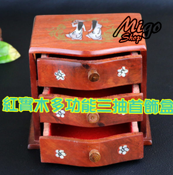 【紅實木多功能三抽首飾盒/三抽】紅木珠寶箱緬甸花梨首飾盒木雕家具擺件