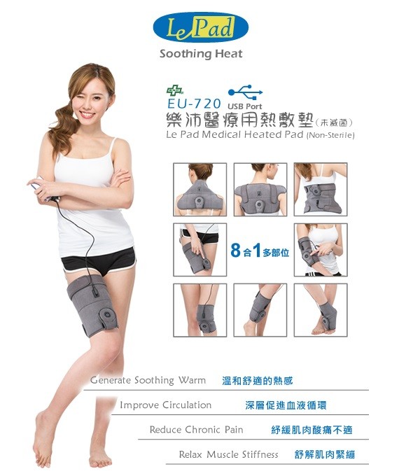 ◆ 品名:【樂沛LePad】USB八合一多部位熱敷墊(EU-720)