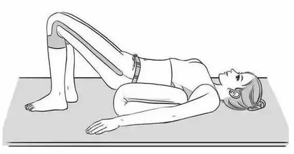 把被子墊在腰臀下面,雙腿彎曲,雙腳踩在地上,肩膀撐住地面,堅持3至5分鐘。這樣做可以促進腹部的血液循環,柔和的按摩到內臟,使身體由內向外都舒適放鬆。身體舒適,心情也跟著放鬆,這才是進入好睡眠的關鍵。