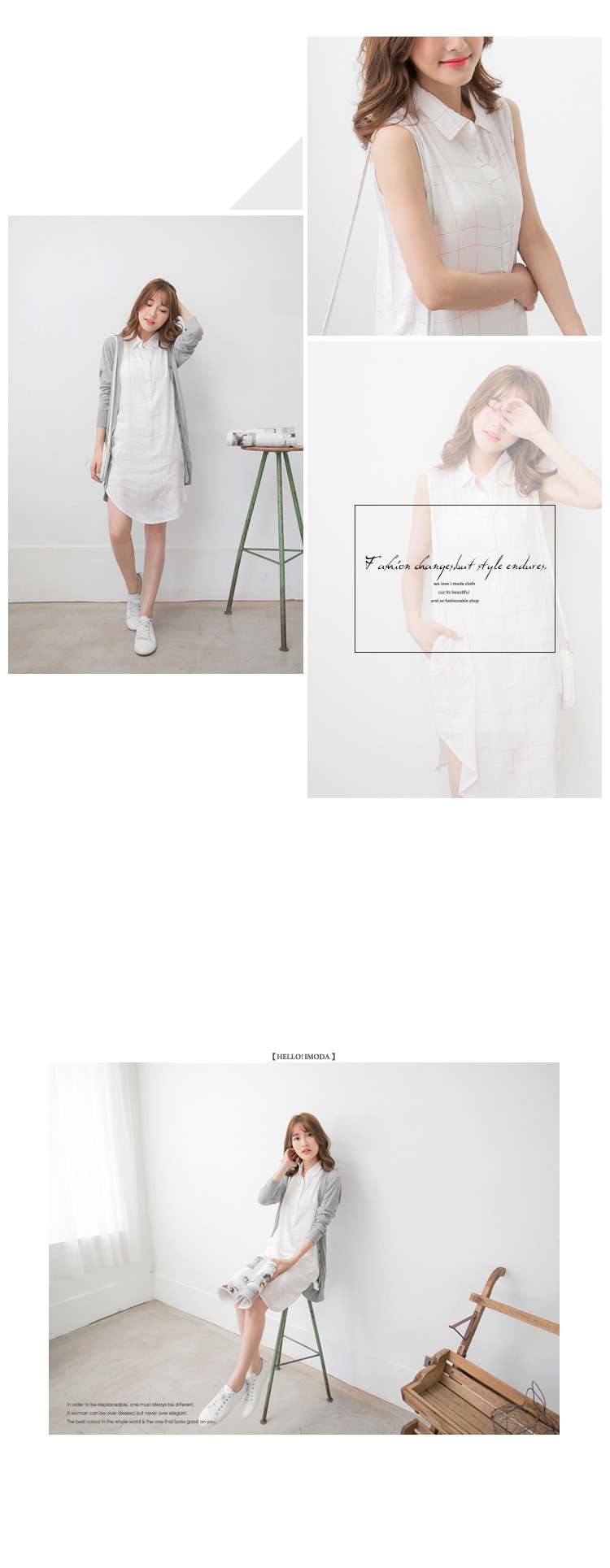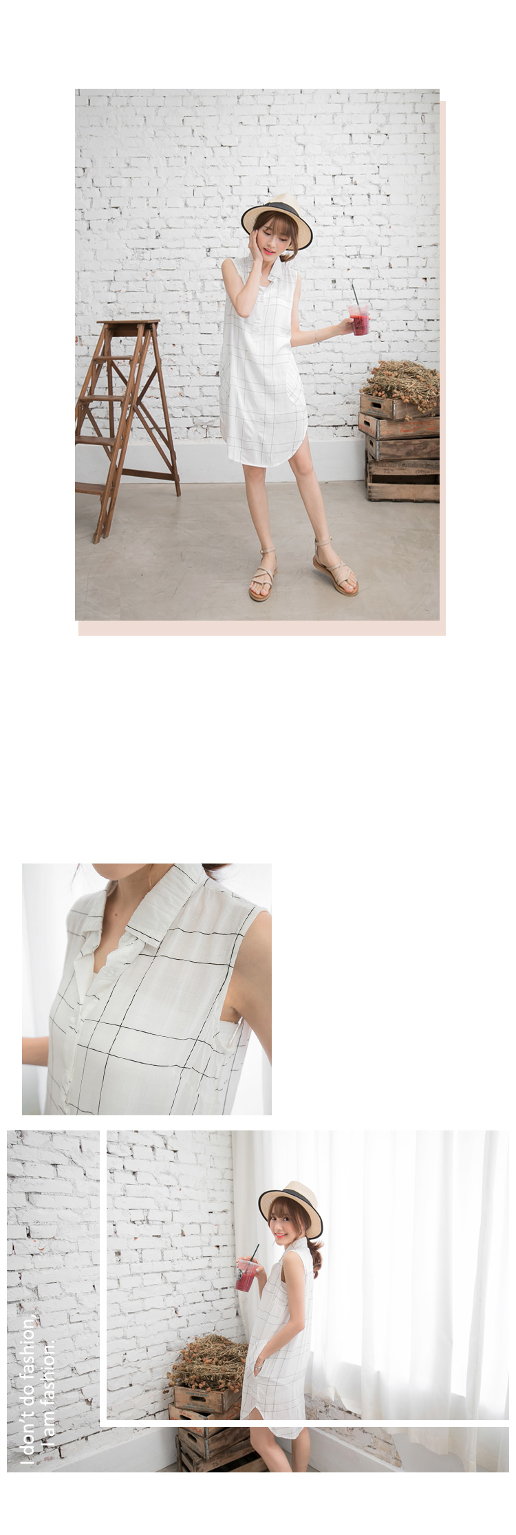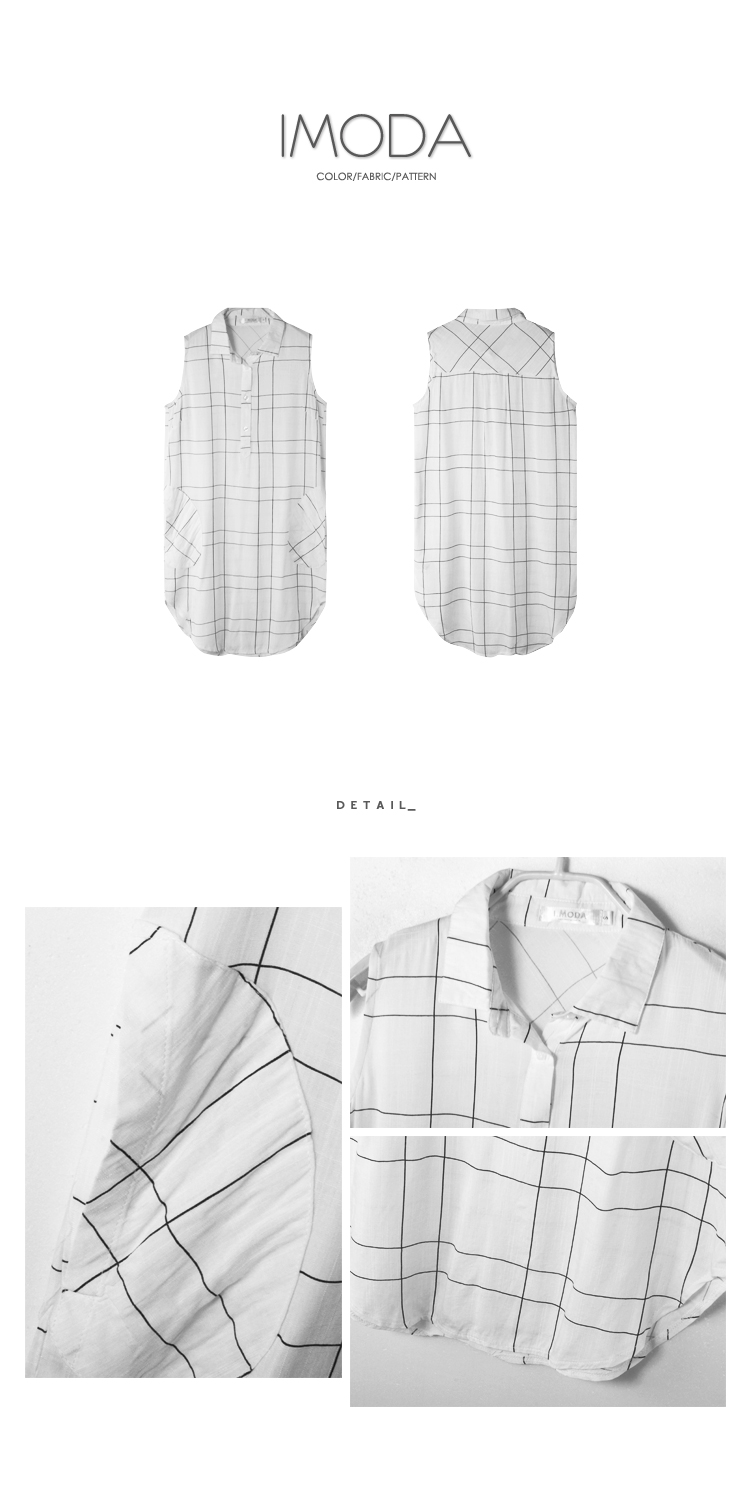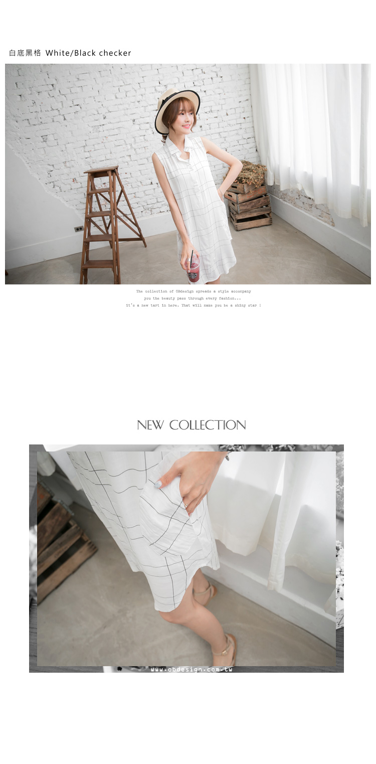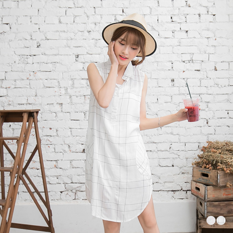061個人信用小額借貸3新品 造型口袋格紋弧擺無袖襯衫領洋裝.2色