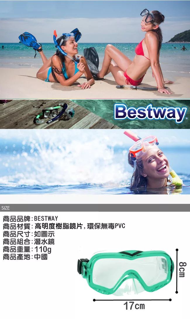 商品推薦:【BESTWAY】炫彩潛水鏡 (綠色)