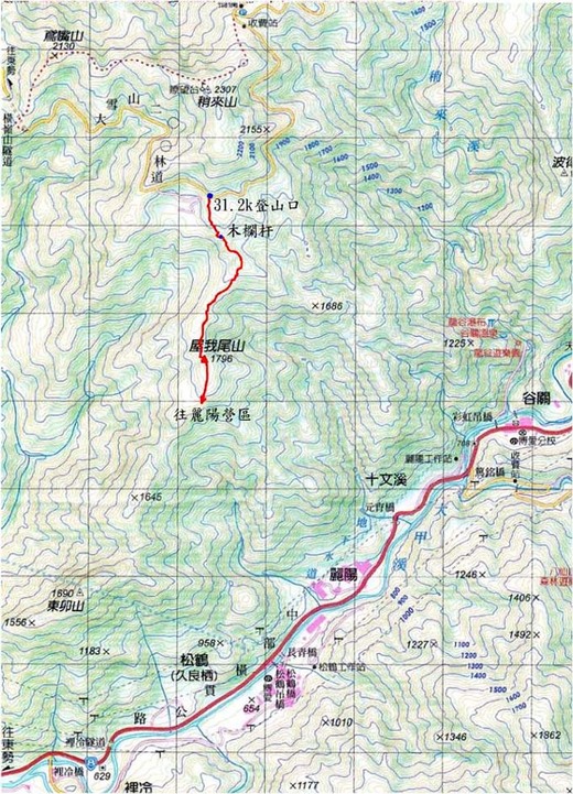 另一條從台8線31.2k麗陽營區起登,約耗時3小時,較為困難,也是營區體能訓練的基地場所。