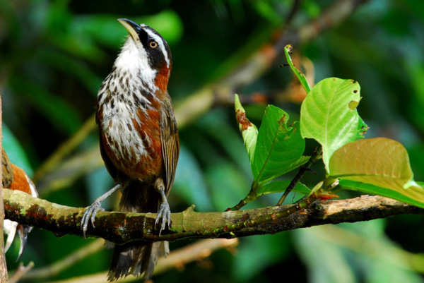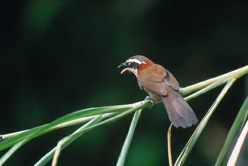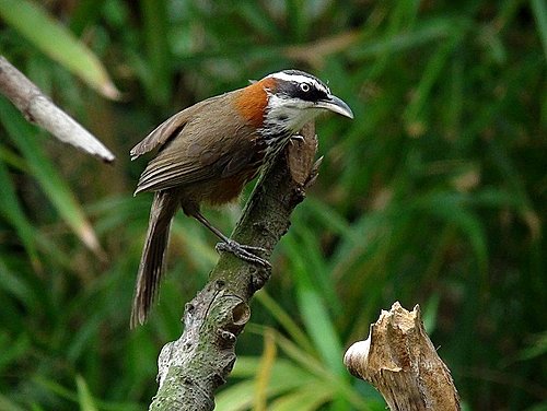 奸臣鳥。身上大致為紅褐色,有黑色過眼帶,像戴上黑色面罩,會發