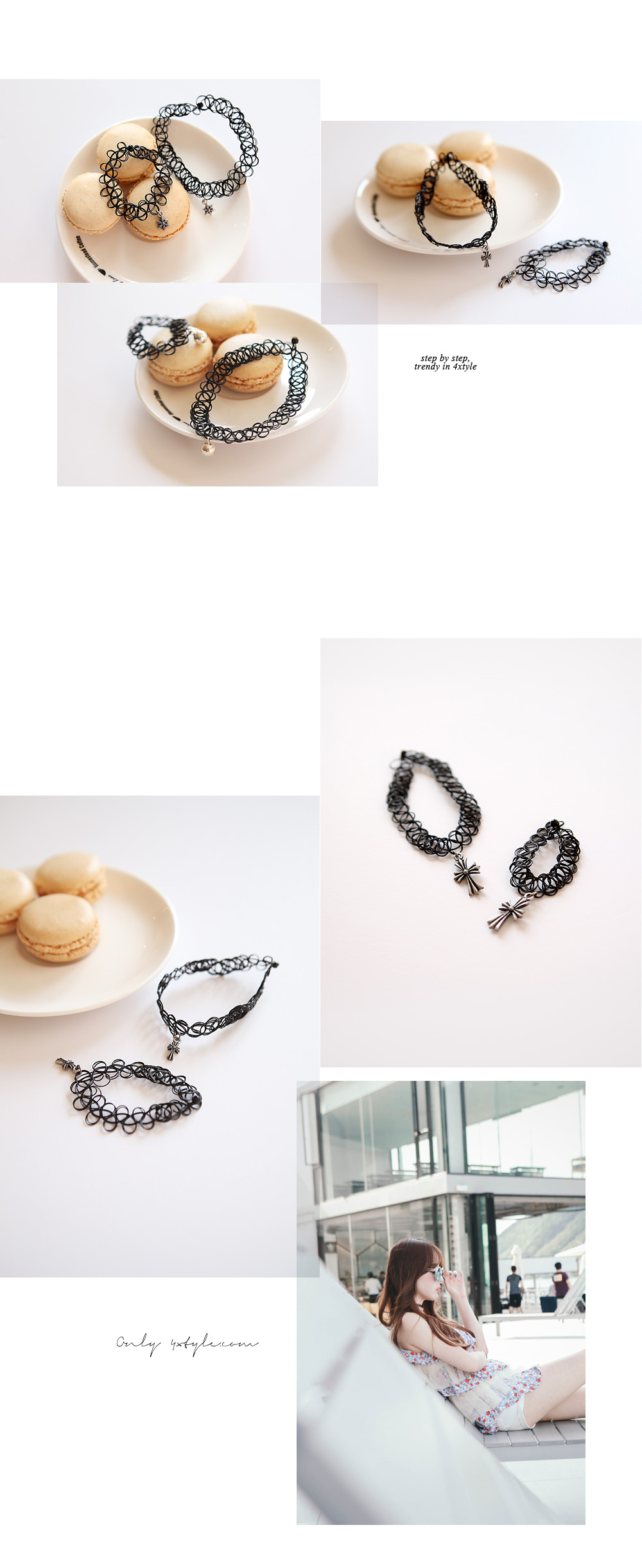 [ 4xtyle ] [ 銀 ] 紋 CHOKER 手鐲 ( 花卉 MINI 交叉 ), Korean, 服飾 , 4xtyle, 460455, 品牌 : 4 XTLYE, 手鐲, 花紋 , 迷你叉, , koreanmall