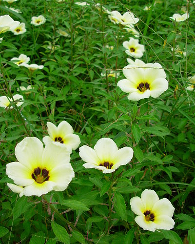 白時鐘花 黃白色花冠深色花心 學名Turnera trioniflora 原產地 巴西