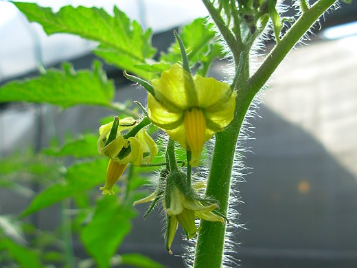 除了網室栽培番茄外,同樣是茄科植物的彩色青椒,也是園中第二項主力作物,至於第三項作物草莓,今年季節較晚,只能隔門看草莓花。