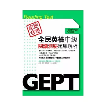 本書針對英檢中級閱讀測驗的3大題型(詞彙與結構、段落填空、閱讀理解)蒐集整理各種常考題目,提供考生最完整的演練與應試的技巧說明,幫助加強閱讀解題的熟練度。