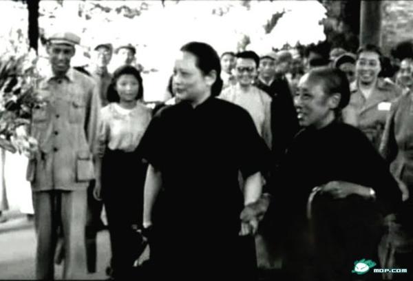 一九四九年九月,準備參加「政協會議」的宋慶齡與何香凝手挽著手。