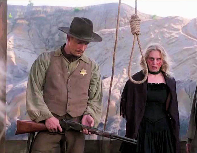 篇首兩幀海報,左圖是典型的西部片調性,右圖則暗示與基督教的牽連。背景是大西部拓荒時代,法紀不張弱肉強食,教會是開墾民的精神寄託,牧師的影響力有時凌駕政府法律之上,給予披著羊皮的惡狼可乘之機。