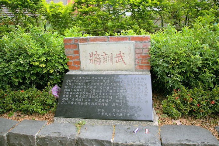 大意說民國42年座落現址的台南市立初中,感於家長捐贈學校圍牆,有武訓興學之風,特立碑紀念。