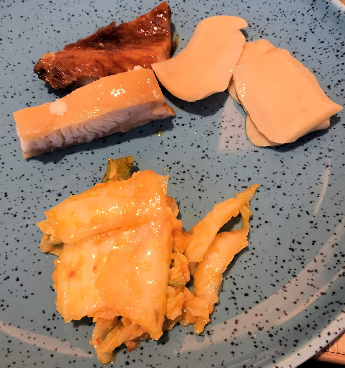 下午茶菜色依然極其豐盛,看不出比午晚餐少什麼;反正多到無論如何吃不完,也就不費心探討。倒是價位便宜甚多,以後若能忍飢挨餓,應該會多選午茶時段。裝潢區位無甚變化,因此只拍盤中獵獲,還請包涵。