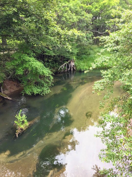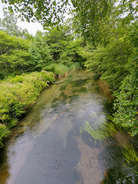 赤沼川因顏色特別,神話故事說是打了敗仗的神明流下的血,現代說法則是沿途流經富含鐵質的礦石,而產生的鏽色。先前搭乘「低公害巴士」的起點「赤沼」,地名也與之有關。