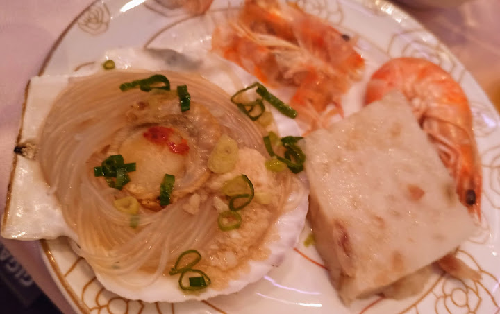 由於舞台上持續有些致詞、表揚以及藝能表演各種活動,燈光不太明亮;加上老友相見甚歡,上菜都是等挾進盤中,才趁空按個快門,色澤不優,只能說留個紀念。