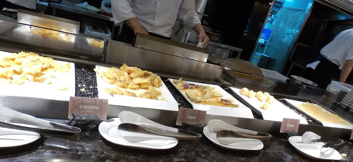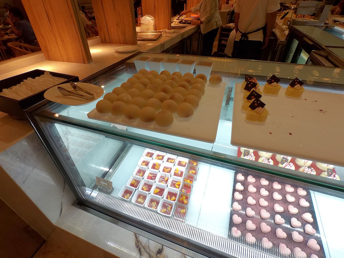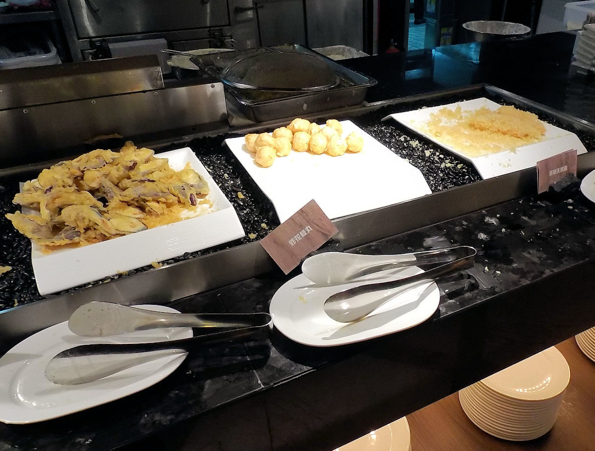 因為稍微晚到,幾乎都排在龍尾巴,剛開始實在很悶。認命不排隊以後,反而海闊天空,悠遊愜意。只是這麼一來,照片裡頭多半是快掃光的慘烈景象。儘管補貨不慢,但吃客太多,風捲殘雲,盤子裡經常是半空的。實況如此,無可奈何。