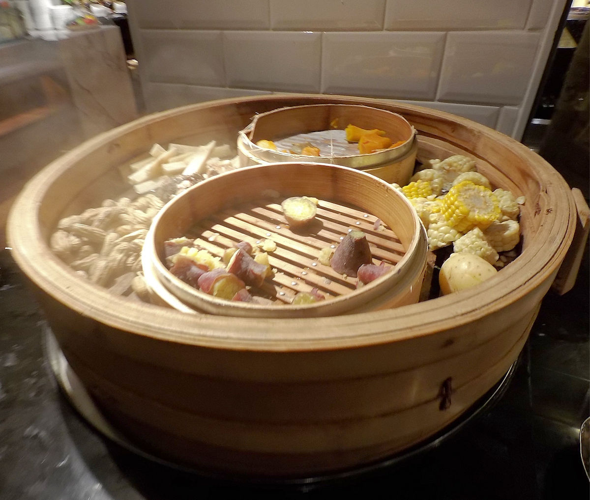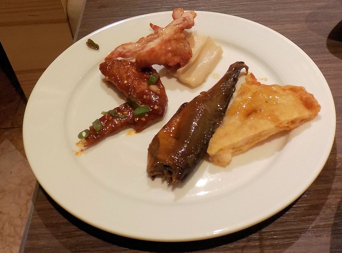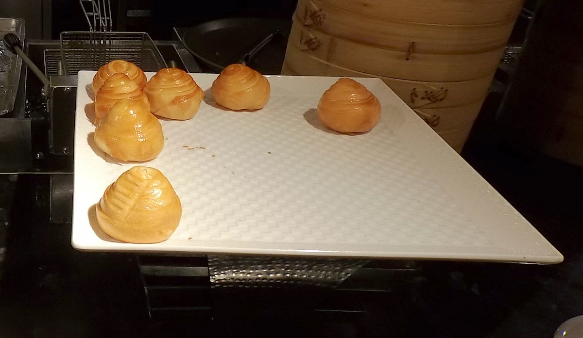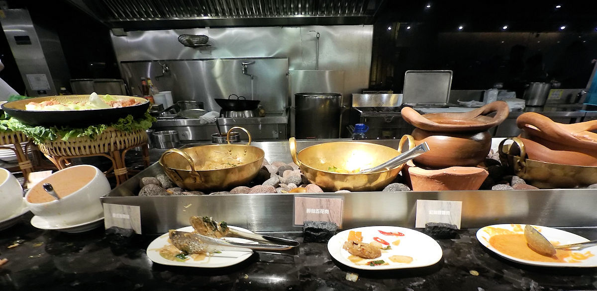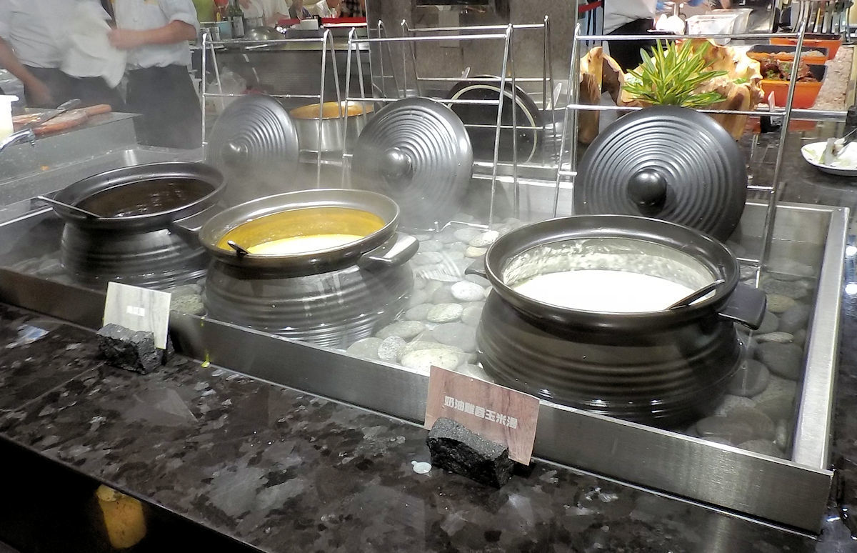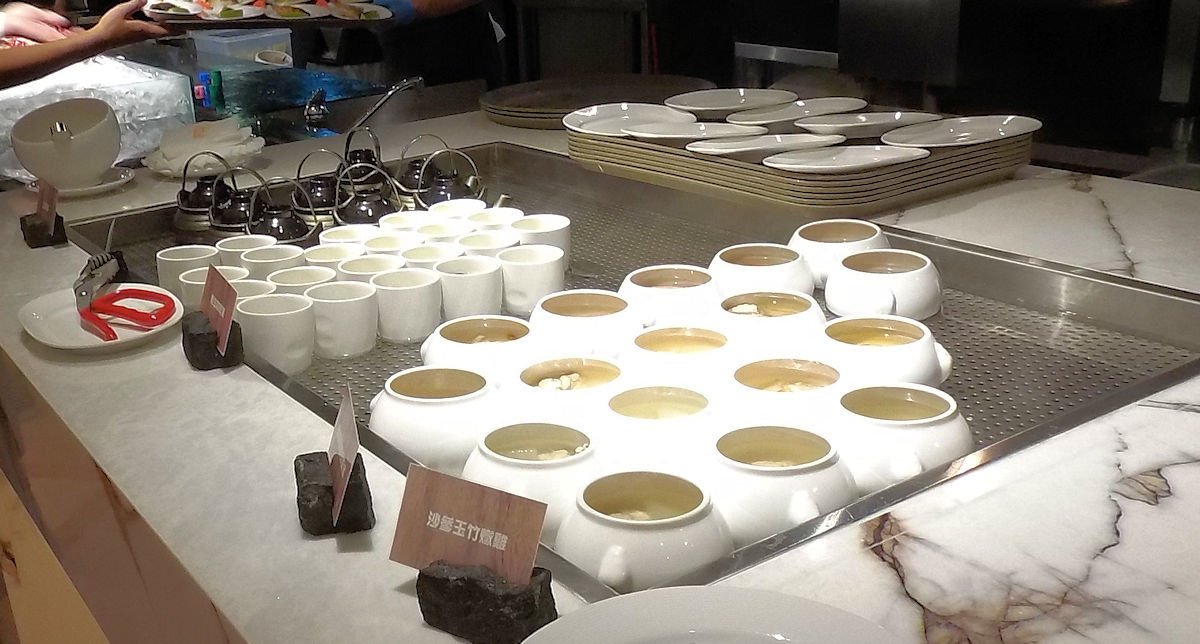 如同一般包肥餐廳,愛吃什麼大都自取,也有點菜由服務員送上桌。所謂「現做立取」其實仍然是自己拿,只不過產出速度跟不上,開門第一批拿走,後面就得等候啦。譬如下面會看到的蘿蔔糕、鴨肉捲和龍蝦湯之類。其實大可以列入點餐後送,吃包肥的饕客,那會在意差個幾分鐘。