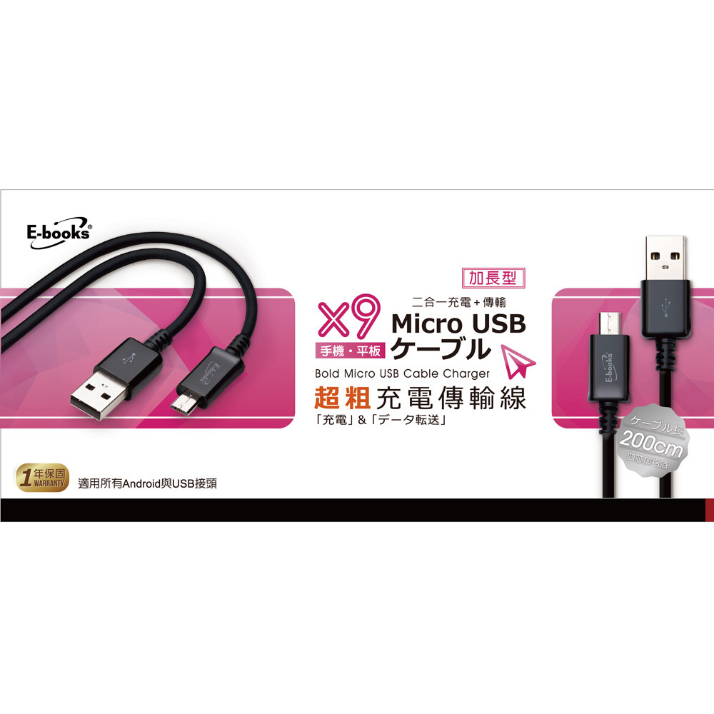 E-books X9 Micro USB超粗充電傳輸線2m