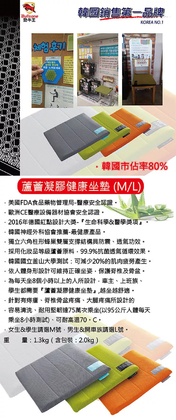 【Bullsone-勁牛王】蘆薈凝膠健康坐墊(三色可