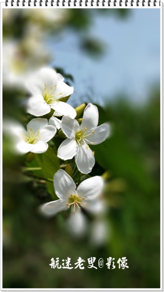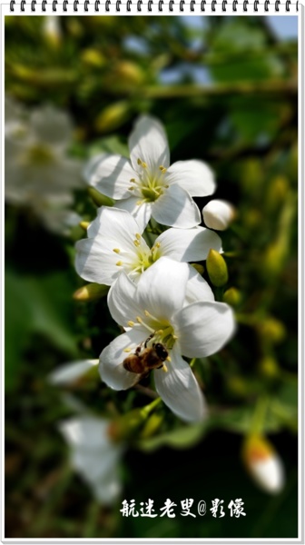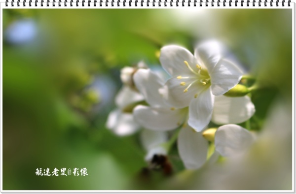 雪白的花瓣,襯托出挑水古道的寧靜,壓彎了樹枝,隨風搖曳,散發清香。