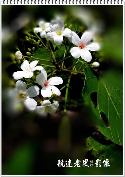 油桐花在兩週內由長滿葉子,接著就開花,早春發芽,接著滿樹白花簇簇,初夏白花如雪下。