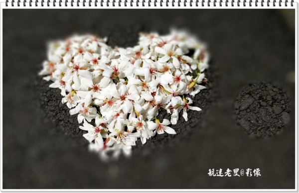 粉紅色的花蕊點綴於雪白的花瓣中,微風拂過,花朵如雪片般紛紛落下,地面厚厚一層落花如一層白雪,美得攝人心魄。