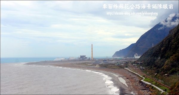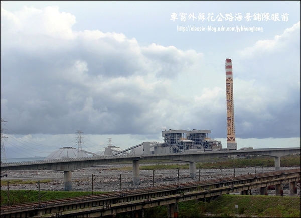 北迴鐵路有點神龍見首不見尾的從山崖下通過,遠處的大煙囪,是和平發電廠。