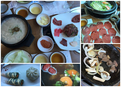 第一天吃燉雞,將土雞、薯仔、紅豆、綠豆等燉成粥,上桌時就是兩隻燉雞,配以一碗韓式燉粥,以豆為主,跟我們吃慣的米粥不同。土雞點海鹽吃起來很滋味。