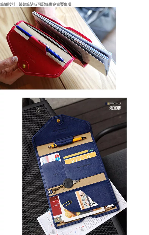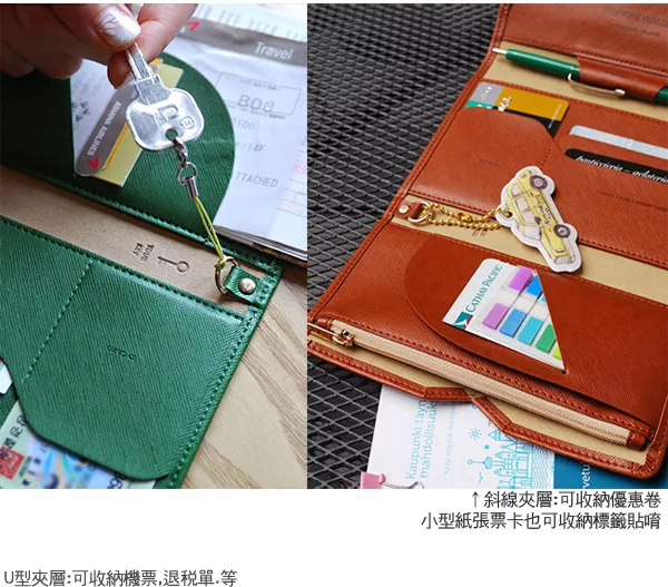 ●筆插/票卡夾/鑰匙圈/護照,機票夾層/零錢鈔票,內部多元收納。