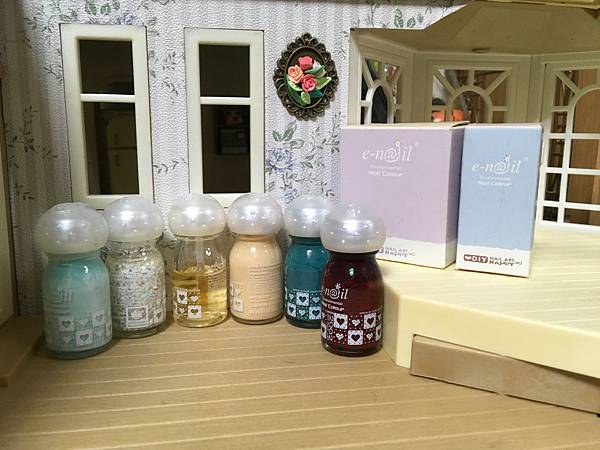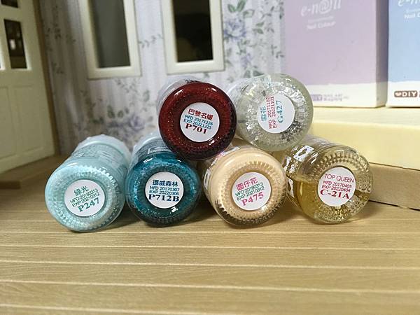 我目前有六瓶enail ,玻璃瓶加上圓形蓋子,造型滿特別好認的,