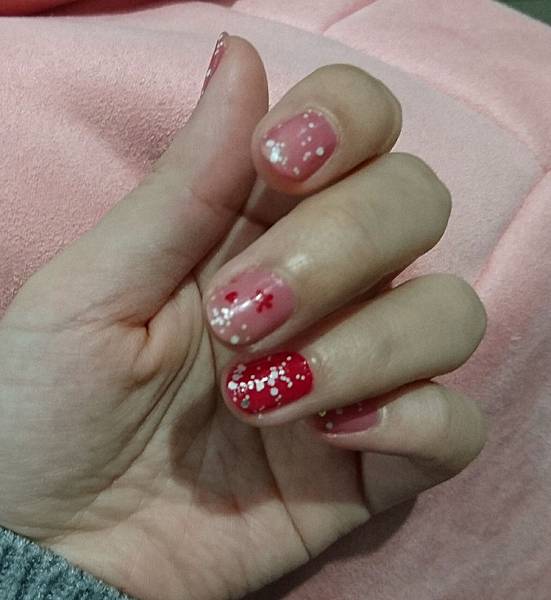 (至於無名指的紅色是一般指甲油,不是無毒可剝的,很容易卡色染色在指甲上,久久不退,超後悔)